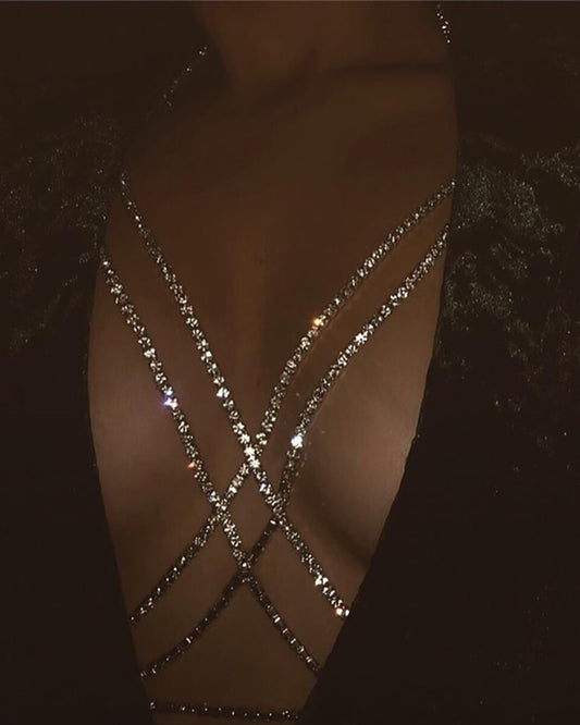 Silver Criss Cross Rhinestone Body Chain (One Size)