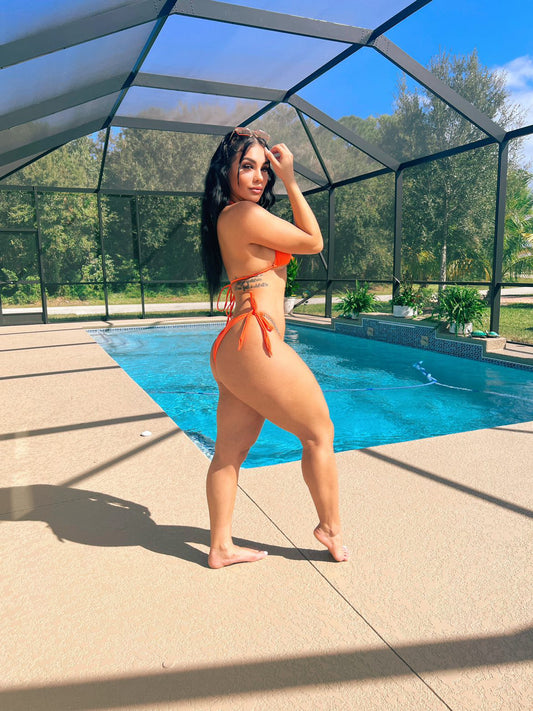 Orange Rhinestone Bikini Set